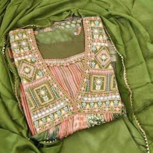 Gulzari Lime & Rust Embroidered Suit Set