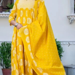 Gulbano – Yellow Floral Printed Anarkali Suit Set with Dupatta