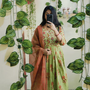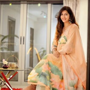 Kamalini Peach Lotus Anarkali Set