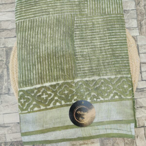 Vrinda – Olive Charm Handloom Saree with Silver Zar