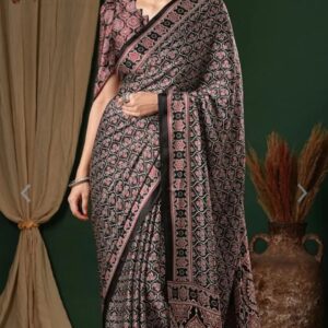 Noor-e-Nazaakat Black & Dusty Pink Ajrakh-Inspired Saree
