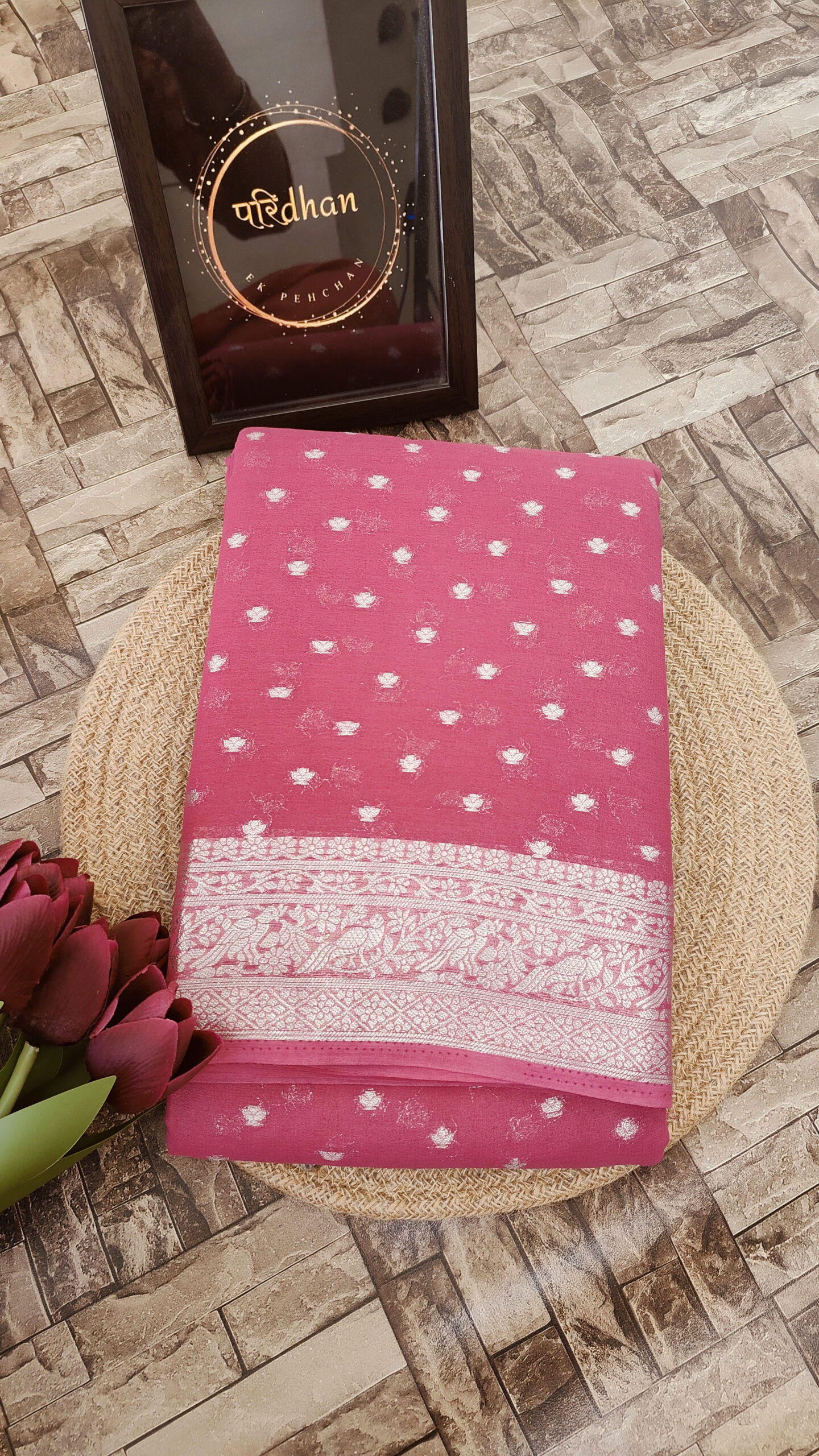 Gulbano – Rose Pink Banarasi Silk Saree with Silver Zari Work