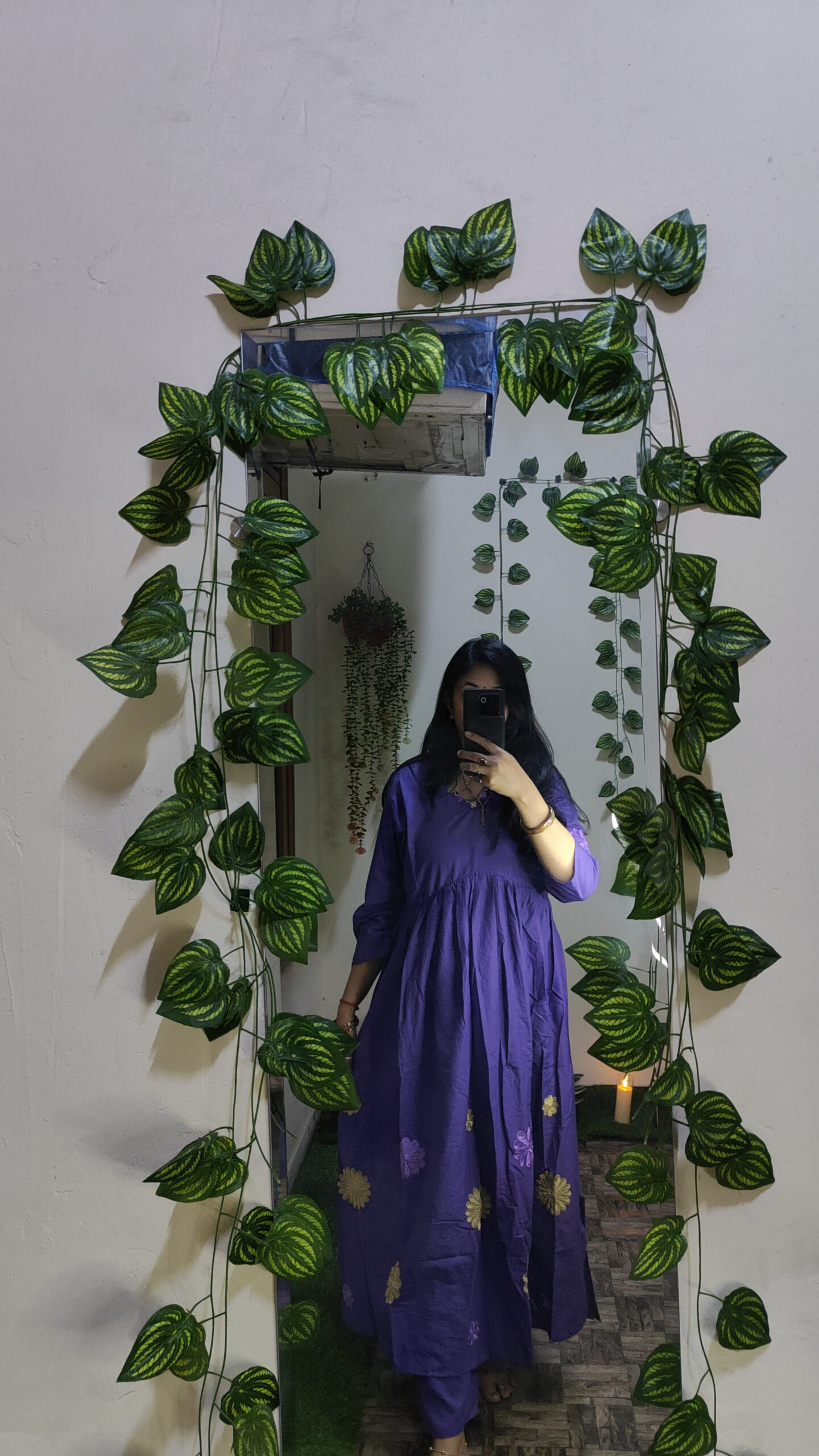 • Color: Deep purple with gold and lavender floral prints