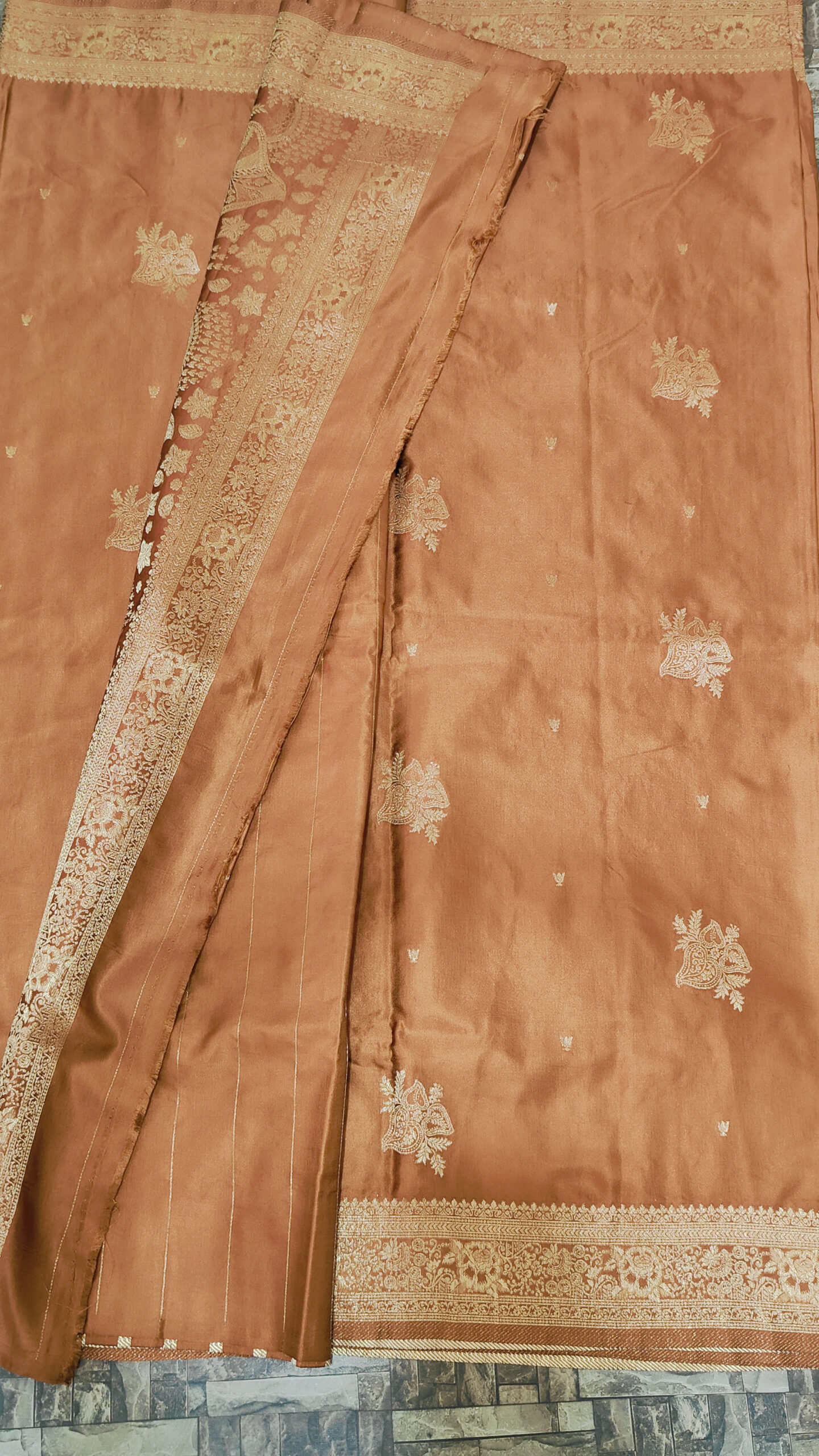 - ๐ Ornate Banarasi border and pallu with traditional patterns