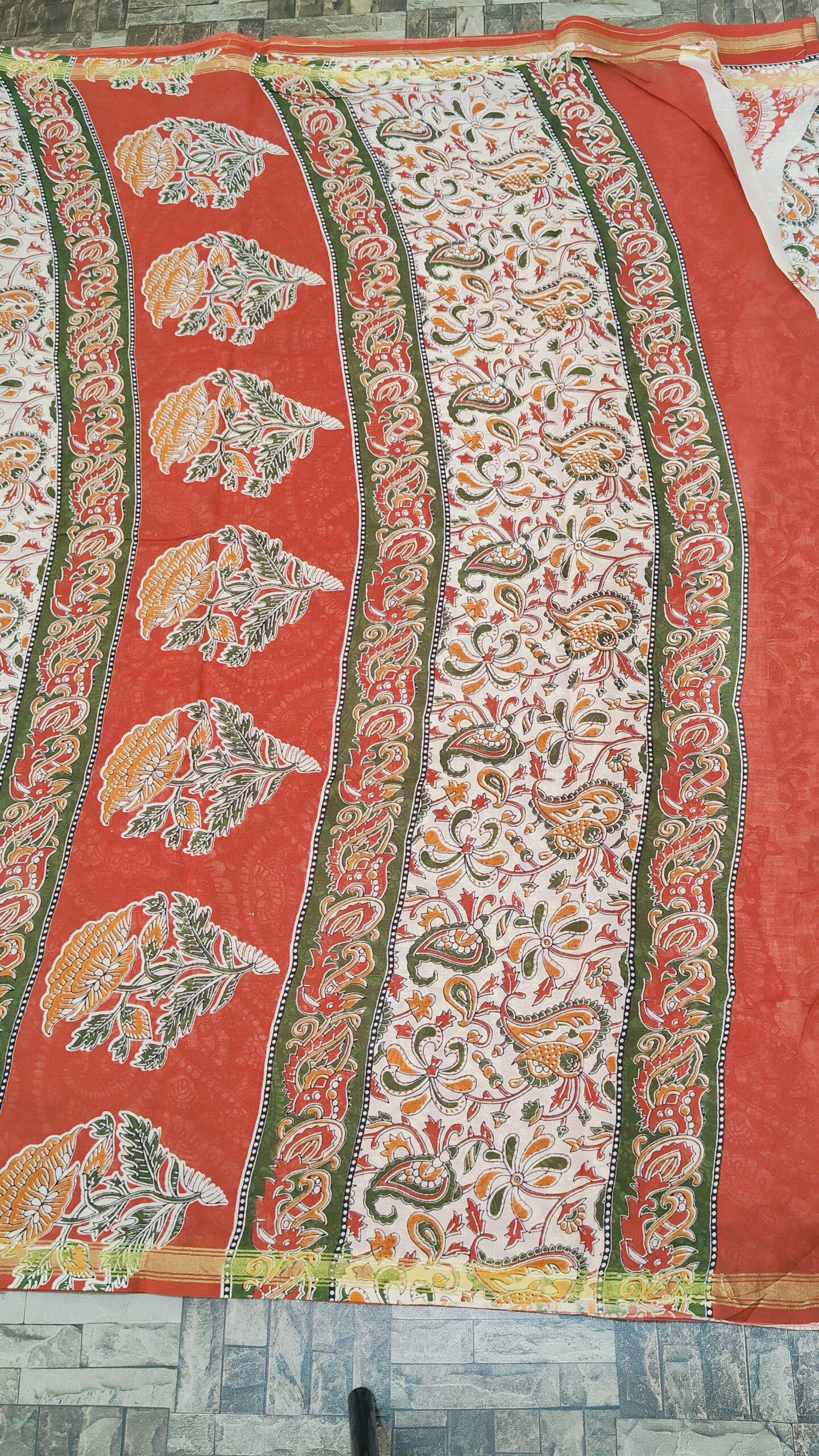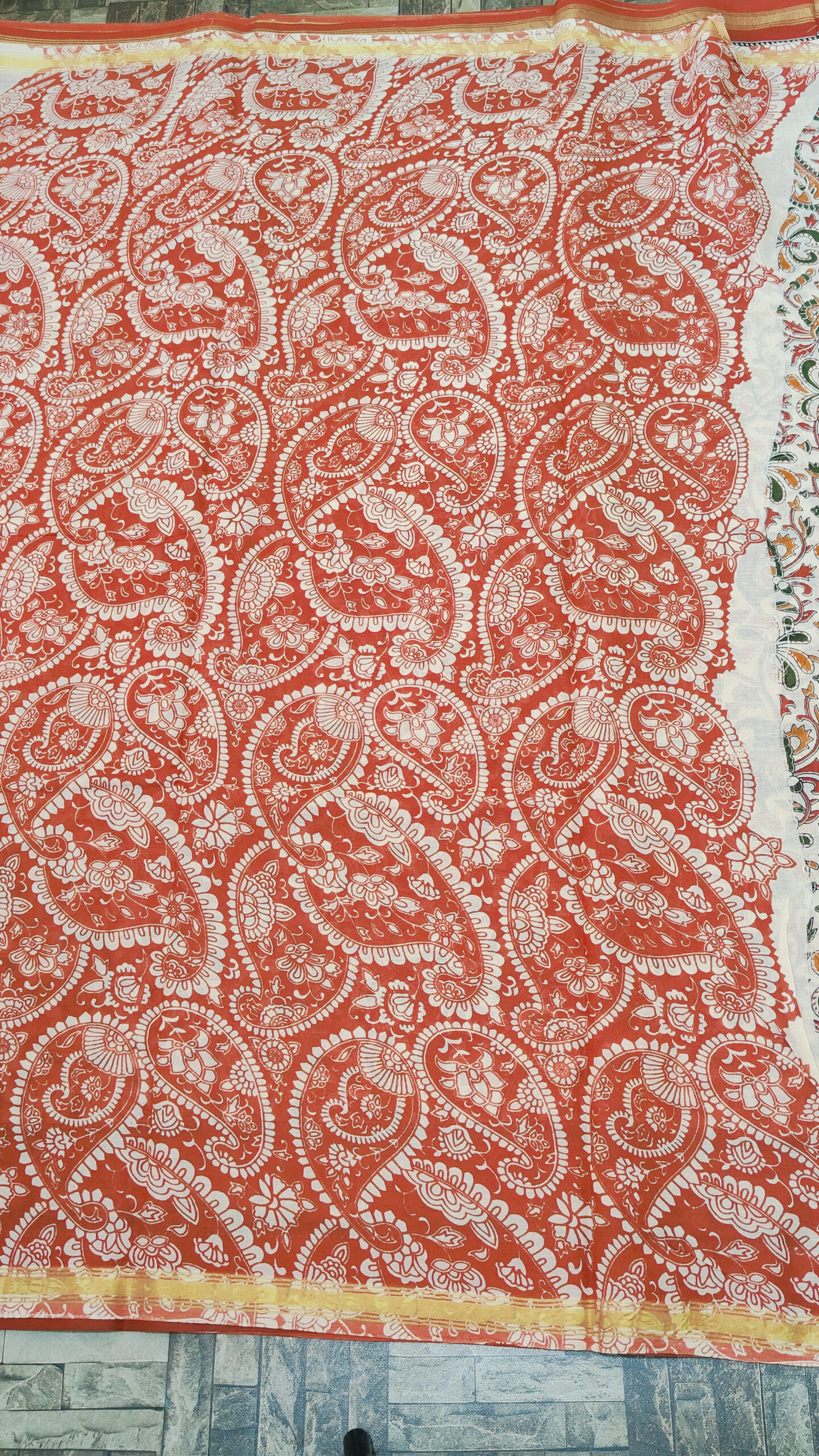 The lightweight, breathable Chanderi cotton makes it ideal for all-day wear—perfect for festive gatherings, pujas, or cultural events. Its natural sheen gives it an understated luxury that never goes unnoticed.